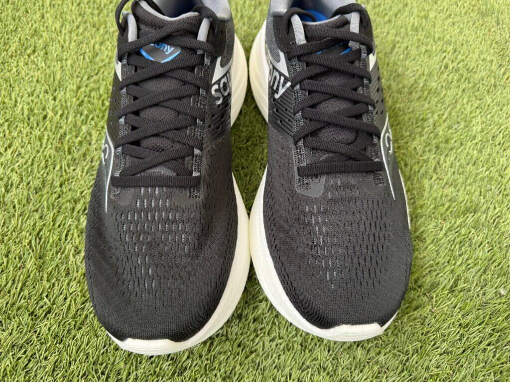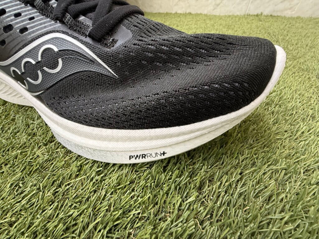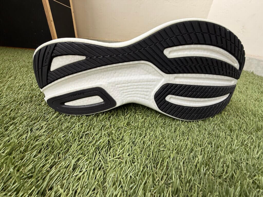 Mesmo com a forma um pouco mais larga, a Saucony colocou uma sobreposição na área interna e externa do arco do pé, que gera bom suporte e segurança.